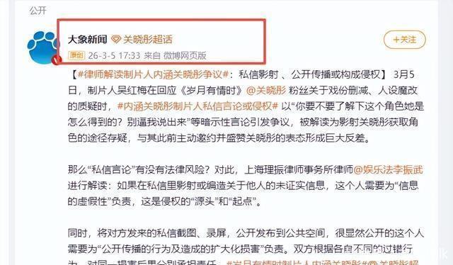 2026年的春天,娱乐圈没等来桃花开,倒等来了一场劈头盖脸的“现形记”。 原本以为顶流偶像的身后是钢筋水泥般的堡垒,谁能想到,那一揭开全是漏风的破草台棚子? 关晓彤在那部名为《岁月有情时》的年代剧里,演了四个月的戏,最后剪出来发现自己快成了“背景板”,制片人吴红梅的一句私信,更是像在这锅已经沸腾的八卦汤里扔了个哑弹。 这事儿要是放在三年前,哪怕给那帮制片人借个胆子,他们也不敢对着昔日的“格格”阴阳怪气。 但现在呢? 吴红梅面对粉丝关于“女主戏份蒸发”的质疑,直接回了一句:“你要不要了解一下这个角色她是怎么得到的?” 这话里的酸臭气和内涵劲儿,简直把“规则”两个字写在了脑门上。 咱们也别揣着明白装糊涂,这种公然叫阵,往往意味着一件事:对方笃定你身后的那个支撑点,已经塌了。 回想一下2026年春晚彩排的后台。 在那个人挤人的狭窄过道里,关晓彤面对象征团圆的吉祥物玩偶,那个下意识侧身躲避、满脸写着“别碰我”的微表情,被长焦镜头抓得死死的。 这种肢体上的极度排斥,比发一万条单身声明都更有说服力。 再看鹿晗这边,直播间里那场“国粹横飞”的崩溃。 作为顶流鼻祖,居然被黑粉两句话气到在镜头前做不雅手势,最后落得个封号的下场。 这种自毁倾向的背后,到底是多少积压的郁结? 你说他是因为黑粉? 我看更多的是因为自家的“院子”起火了。 看看那个叫“趴小趴”的工作人员,一个曾经倒卖资源被前东家开除的人,竟然能大摇大摆坐进鹿晗工作室拿工资。 写错艺人名字、弄错演唱会日期、新歌宣传期间玩消失……这种“由于由于还是由于”的低级错误,放在任何一个专业行业都是要卷铺盖卷走人的,可在这个圈子里,人家稳坐钓鱼台。 这哪是找助理啊,这简直是在家里养了个内鬼,把职业素养按在地上反复摩擦。 我有时候在想,所谓的顶流权力,到底是掌握在明星手里,还是掌握在那群拿着艺人前途换“灰色收入”的草包手里? 这不仅仅是一个偶像的黄昏,更是这个圈子集体性的权力寻租。 就像关晓彤在剧里被剪掉的那40%到50%的戏份。 头四集露面不到10分钟,收官时甚至连镜头都没了,反倒是男主和女二欢天喜地。 一个正儿八经拍摄了四个多月的女一号,最后竟然活成了一个“添头”。 这里面的博弈逻辑冷酷得让人发指。 以前是有名气就有话语权,现在是看谁手里的资源更能交换。 如果实力成了最廉价的搭头,那大家还钻研什么剧本? 就像那段耗时半年做的二十几分钟纪录片,最后主角鹿晗成了配角,镜头全给了那些满嘴“我觉得我很努力”的工作人员。 这种喧宾夺主的戏码,在2026年的内娱演得简直荒诞透顶。 那些曾经在社交平台上卡点、互动、晒糖的岁月,如今连灰都不剩。 2024年起,那个标志性的生日祝福就断了气。 到了2025年、2026年,干脆就是一种让人脊背发凉的死寂。 你要问我这是感情破碎,还是某种资源的解绑? 我觉得两者都有。 当男方的团队成了“破风扇”,当女方的资源遭遇到高位者的“野蛮处刑”,这场曾经轰轰烈烈的京圈联姻,更像是在各种利害关系的拉扯中,被迫成了一滩烂泥里的摸爬滚打。 最讽刺的不是分手,而是分手之后那些原本藏在暗处的人,一个个跳出来吃“人肉红利”。 司晓迪的那场爆料,不管真假,起码撕开了一条口子,让外人看见了顶流私生活里那些被过度美化的荒唐。 所谓的陪睡陪玩可能真的只是冰山一角,最可怕的是这个圈子那种“把恶俗当常态”的共识。 在很多业内大佬眼里,角色是可以用来“交换”的,戏份是可以用来“泄愤”的,而粉丝的忠诚度,不过是这群狼眼里的韭菜田。 回头看看现在的局面。 关晓彤在那部《岁月有情时》里和黄景瑜对戏时的状态,反而透着一股彻底豁出去的灵气。 没了“流量嫂子”的紧箍咒,她的演技反而迎来了某种病态式的爆发。 或许对于她们这种层级的艺人来说,名气有时也是毒药。 就像成名过早的弊病,还没学会如何在满是怪兽的森林里独自行走,就被周围那些四处漏风的草台班子给供歪了路。 你问内娱还有救吗? 看看鹿晗工作室里那个连名字都能写错的PPT,再看看那个对着女明星公开阴阳怪气的制片人。 专业性早已被这股名为“权力与裙带”的黑洞给吞了。 当底裤被彻底撕掉,暴露出来的不止是个人的不堪,而是整个链条的锈迹斑斑。 在这个成人世界里,圣诞老人早就死了,哪怕你是顶流,一旦没人在那张合同背后为你递刀,你就是那盘随时能被分掉的残羹冷炙。 这种极度的现实与丑陋,比起所谓的出轨或分手,才更让观众觉得倒胃口。